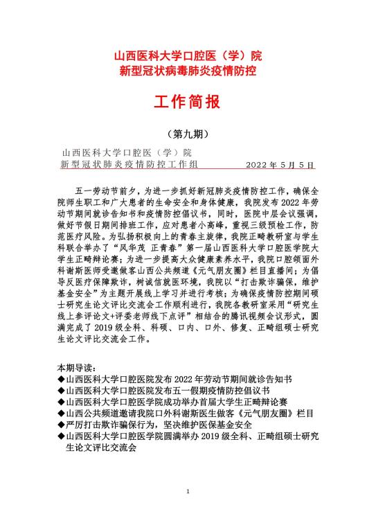 我院新型冠状病毒肺炎疫情防控工作简报(2022年 第九期)