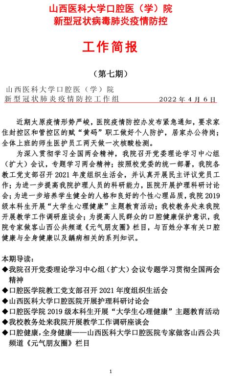我院新型冠状病毒肺炎疫情防控工作简报(2022年 第七期)