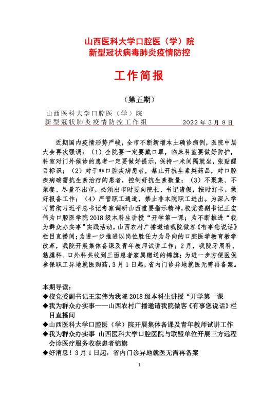 我院新型冠状病毒肺炎疫情防控工作简报(2022年 第五期)