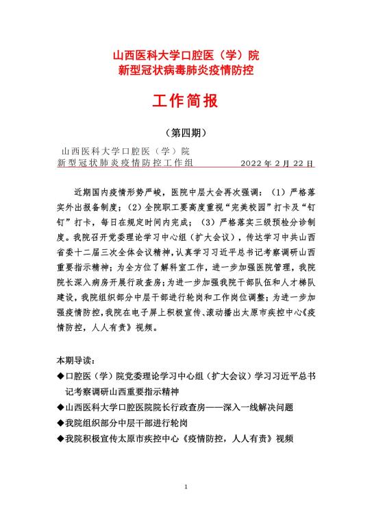 我院新型冠状病毒肺炎疫情防控工作简报(2022年 第四期)