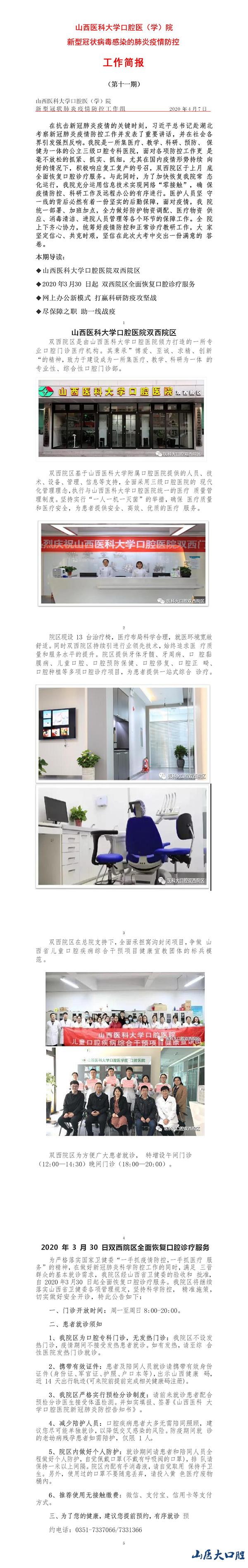 口腔医(学)院新型冠状病毒感染的肺炎疫情防控工作简报(第十一期)