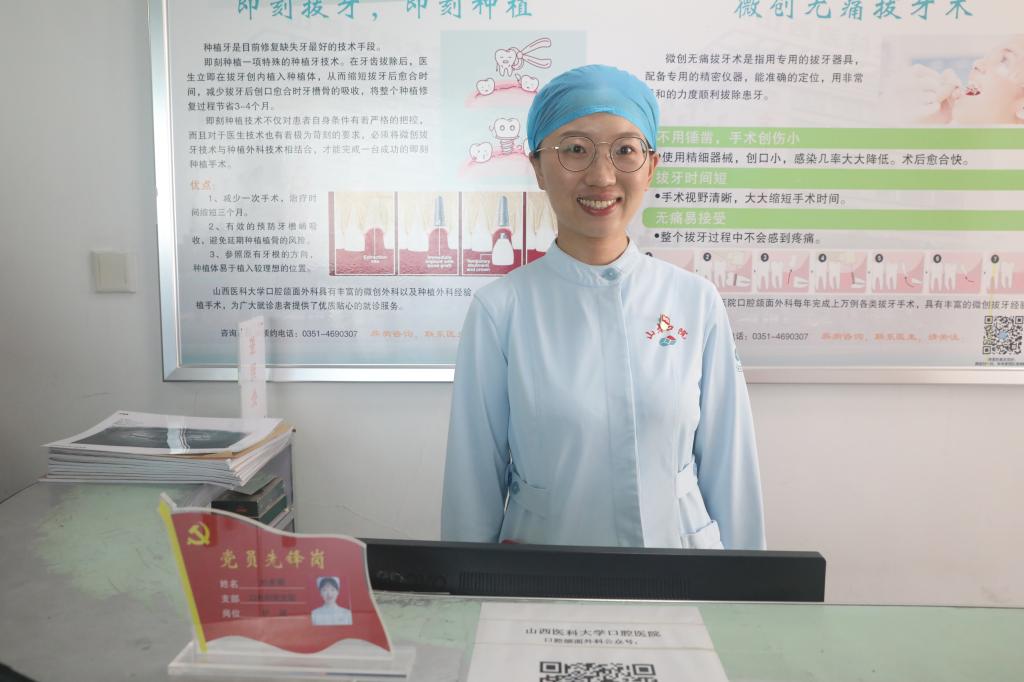 自从担任口外科党支部组织宣传委员以来,她始终坚持以党性为后盾,以政治责任感为动力,坚持认真学习,严格要求自己,不断提高自己的政治思想水平和工作能力,出色完成上级赋予的各项工作任务。作为口腔护士,积极配合医生完成本职工作,还耐心地为患者讲解口腔预防保健知识,多次在医院组织的爱牙日活动中进行科普宣教。在2019年和2021年全国口腔健康科普演讲交流活动中荣获“科普精英”荣誉称号,2021年在“健康中国 科普助力”口腔护理科普能力交流活动中荣获“科普之星”称号。