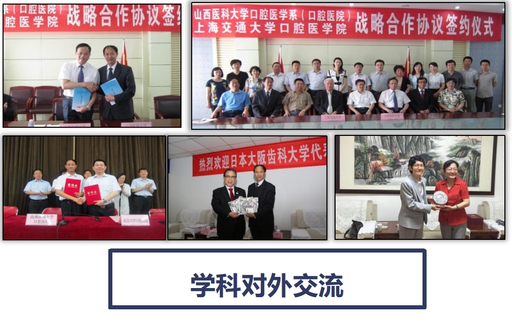 学科与北京大学口腔医学院(口腔医院)、上海交通大学口腔医学院、首都医科大学口腔医院、日本松本齿科大学、大阪齿科大学等国内外知名大学开展了深度科研合作,积极协作开展课题,充分发挥重点实验室的人才与技术优势;同时,积极引进国内外著名学者作为实验室的兼职教授,鼓励实验室人员参加国际大型的科研合作或攻关,通过合作,提升实验室的知名度和科研能力。