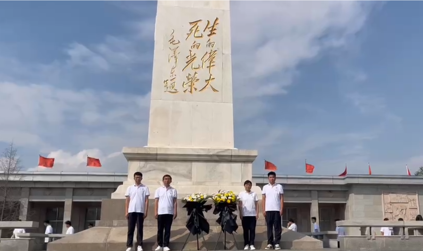 在刘胡兰纪念碑前,学院老师敬献花圈,细心地整理花圈,并向烈士墓三鞠躬。全体同学环绕刘胡兰墓一周表达敬意,整齐列队,低头默哀,表达对先烈的哀思。