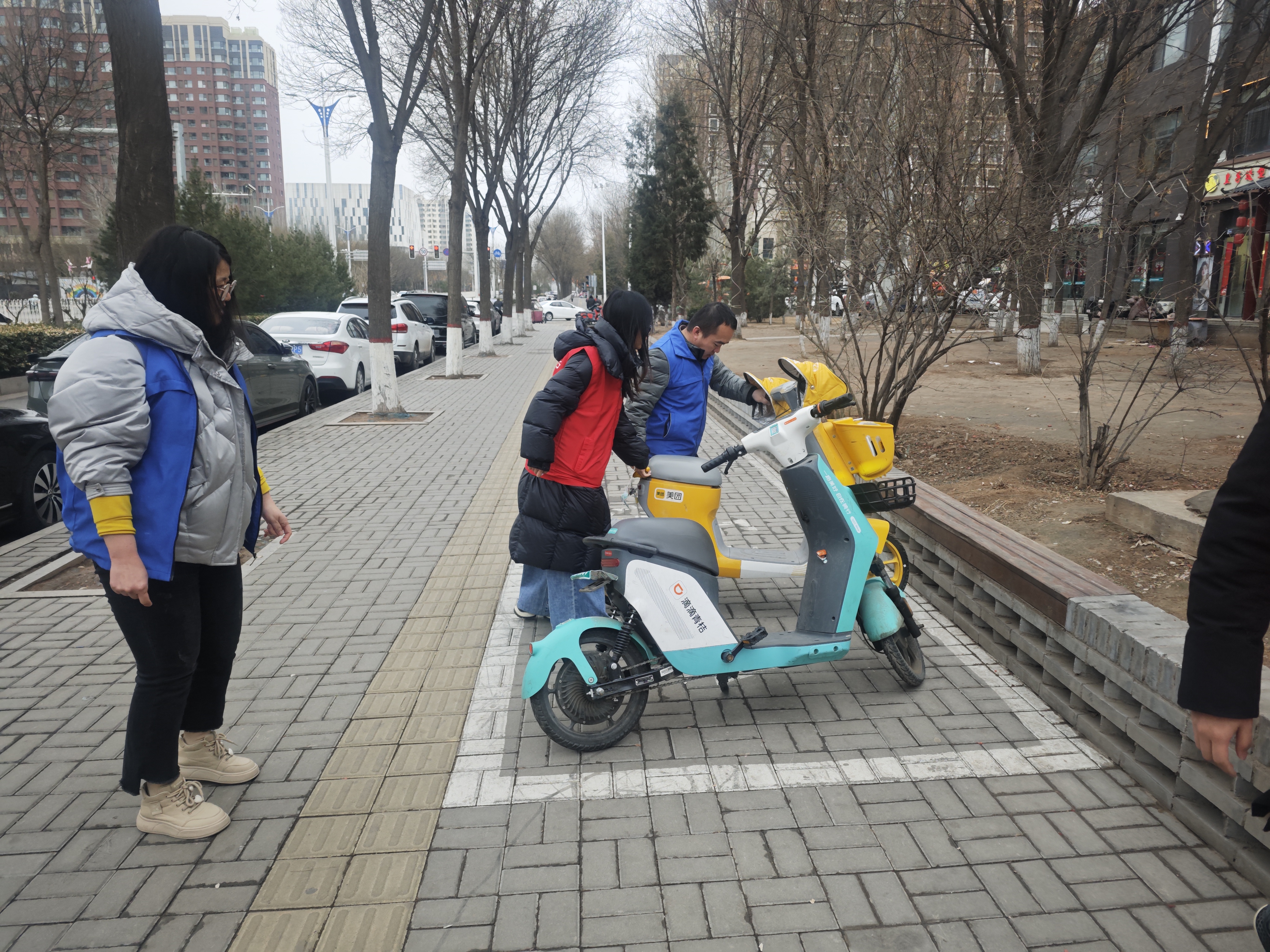 宣讲结束后,马克思主义学院师生作为“雷锋志愿者”深入社区开展志愿服务活动。志愿者身着红马甲,将小区内和街道上随意停放的自行车、电动车推到指定位置摆放整齐,同时向过往居民群众积极宣传文明骑行、有序停放的重要意义,鼓励居民积极纠正身边的不文明行为,共享文明生活。
