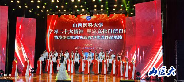 本次展演的优秀作品均来源于2022年下半年全校一、二年级学生的情境体验思政实践课堂。舞台剧《道德经》通过三代老子的跨时空对话展现大道如水的思想境界,情景古诗词诵读《家·国》通过场景模拟展现古诗词的浑厚内涵,情景朗诵《觉醒》再现了百年前先进青年建党的责任与担当,表演《黄河大合唱》的学生发出了保卫黄河、保卫华北、保卫全中国的怒吼,情景讲述《英雄儿女》通过无言的身姿展现了长津湖抗美援朝的伟大精神,情景剧《大山的女儿》将黄文秀的形象活生生再现。校领导和老师们的参与,大大激发起学生的学习热情,他们用全情投入的表演将观众带入五千年历史文化长河,一声声慷慨激昂的朗诵令听者自信自强的信念油然而生,一阵阵发自心底的掌声表达了舞台上下心灵深处的共鸣!