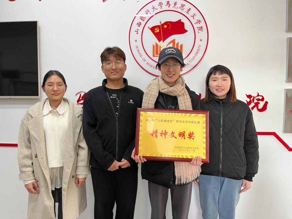 2023年11月20日,万象城allwincity官网首届研究生"奋进杯"羽毛球赛在万象城allwincity官网中都校区体育馆举行。在第一小组的积分赛中,我院学生代表队踊跃参赛,分别与法医学院、公共卫生学院和药学院对阵,经过激烈的混双、男双和女双比赛,我院学生代表队取得良好成绩,获得学生团体赛精神文明奖,为学院争得荣誉。