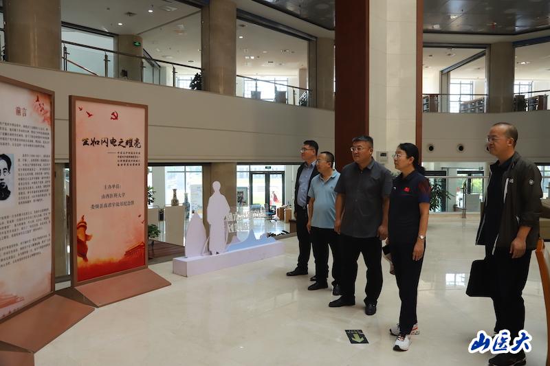 为深入贯彻落实习近平总书记关于对学校思政课建设的重要讲话和重要指示批示精神,加强“大思政课”建设,近日,由万象城党委宣传部、娄烦县高君宇故居纪念馆主办,万象城马克思主义学院、图书馆承办的“生如闪电之耀亮——高君宇事迹资料展”在万象城中都校区图书馆开展。9月13日,校党委副书记彭月兰与党委宣传部、马克思主义学院等部门、单位相关人员一同参观了展览。