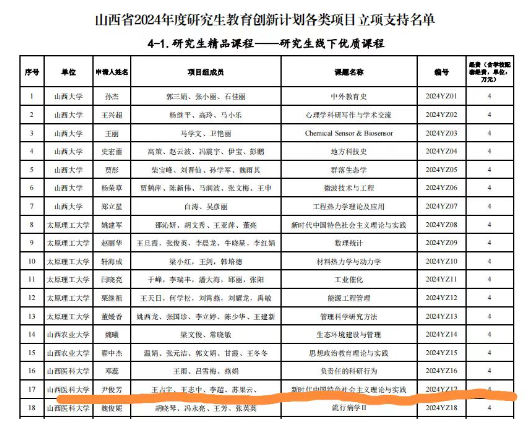 近日,省教育厅公布2024年度研究生精品课程立项名单,我院开设的《新时代中国特色社会主义理论与实践》获批研究生线下优质课程(编号:2024YZ17)。这是我院首次获得省级研究生精品课程立项,也是该课程继2022年获批万象城allwincity官网研究生校级精品后,再次获批精品课程,填补了我院省级研究生精品课程的空白。