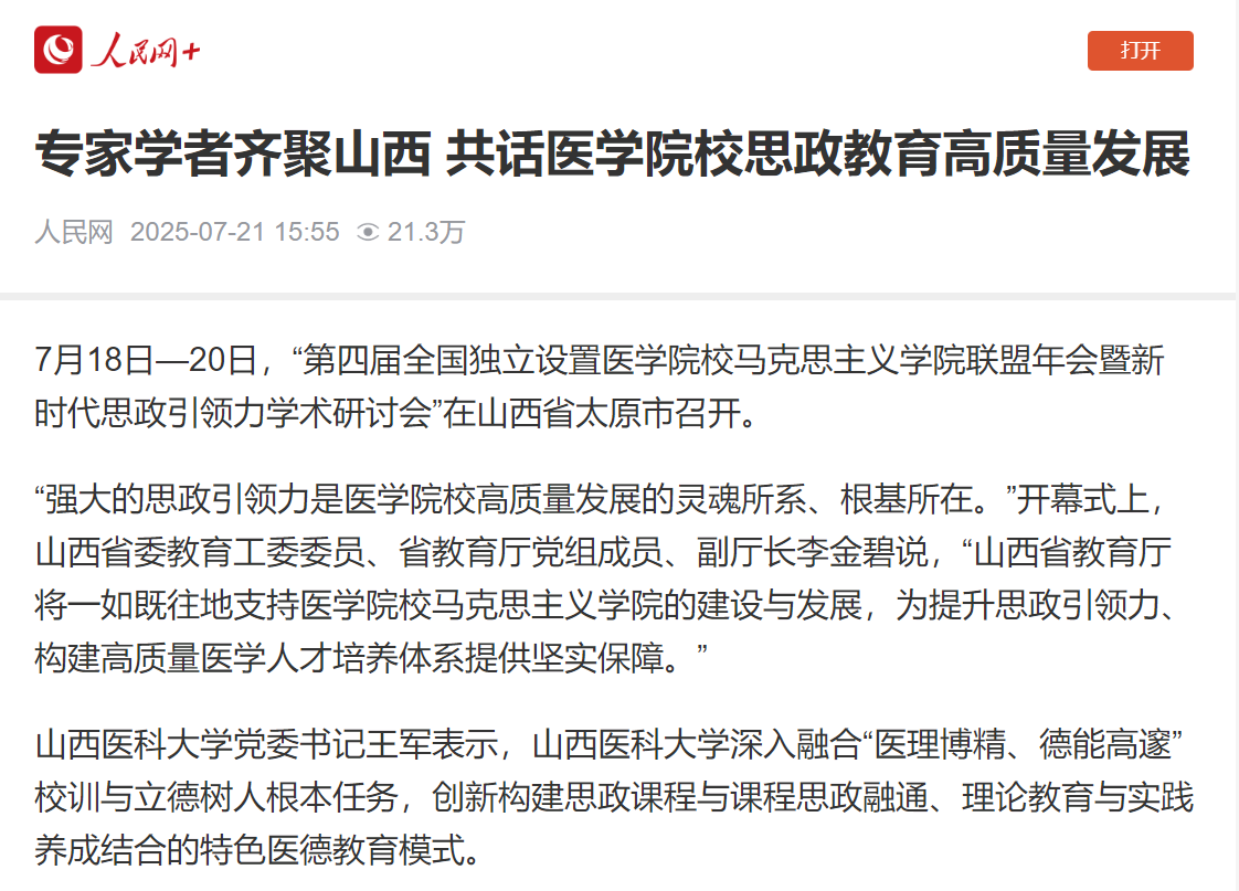 人民网:专家学者齐聚山西 共话医学院校思政教育高质量发展