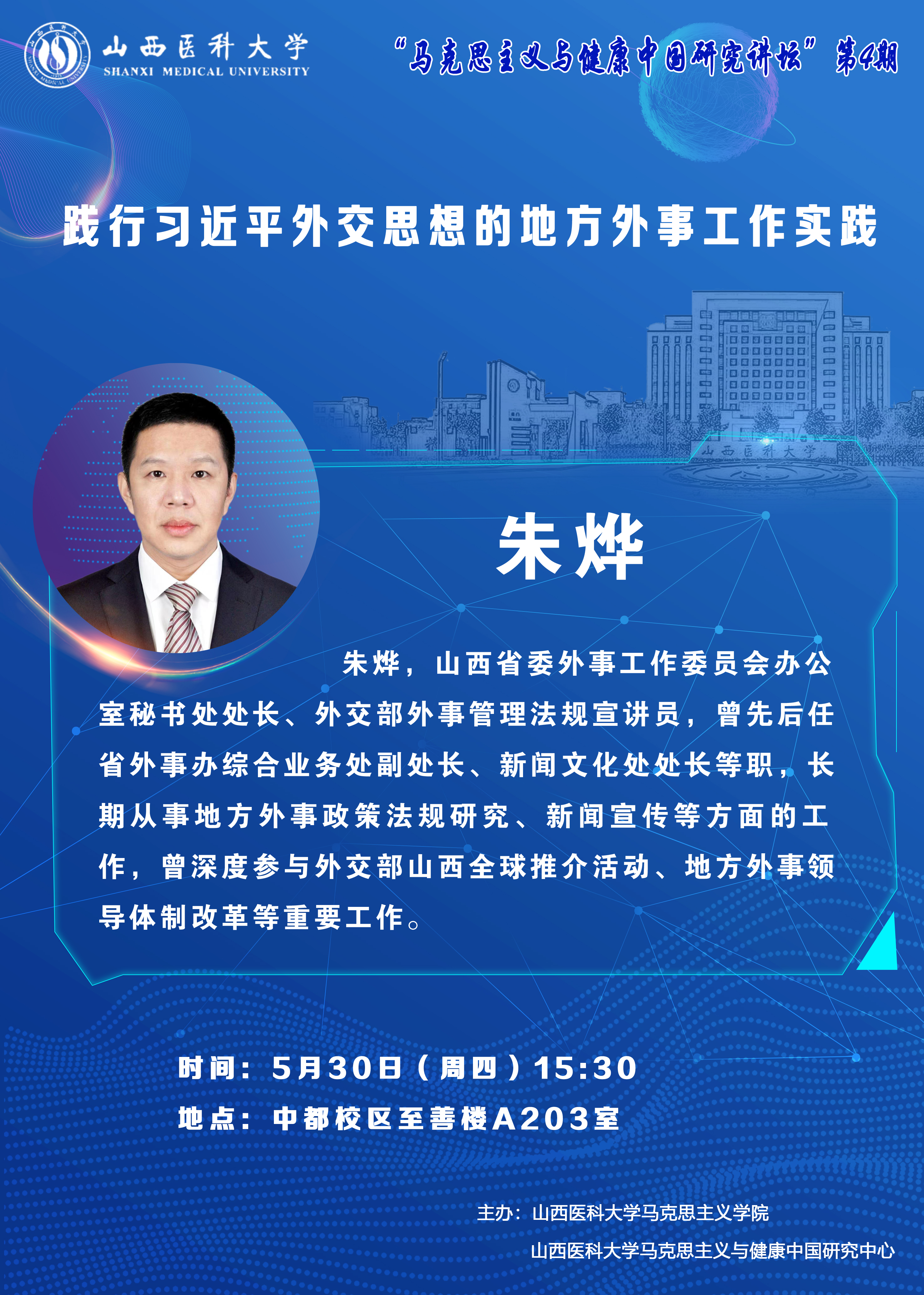 【马克思主义与健康中国研究讲坛第4期】朱烨:践行习近平外交思想的地方外事工作实践