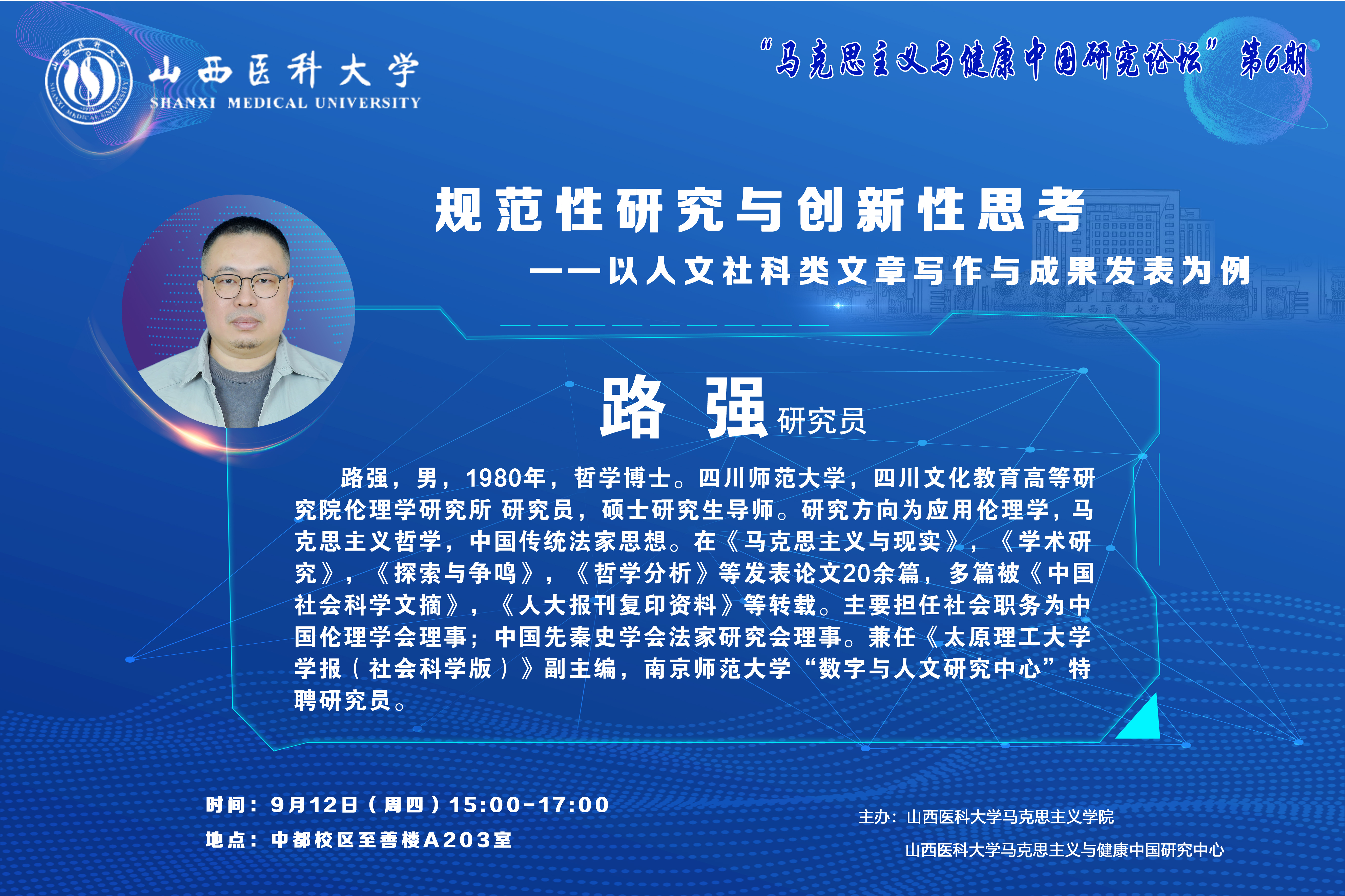 【“马克思主义与健康中国研究讲坛”第6期】路强讲“规范性研究与创新性思考——以人文社科类文章写作与成果发表为例”