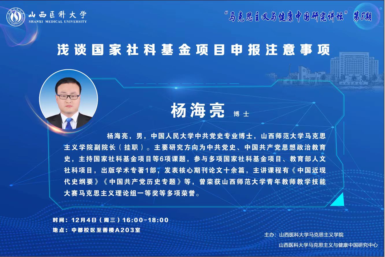 【“马克思主义与健康中国研究讲坛”第8期】杨海亮讲“谈谈国家社科基金项目申报注意事项”
