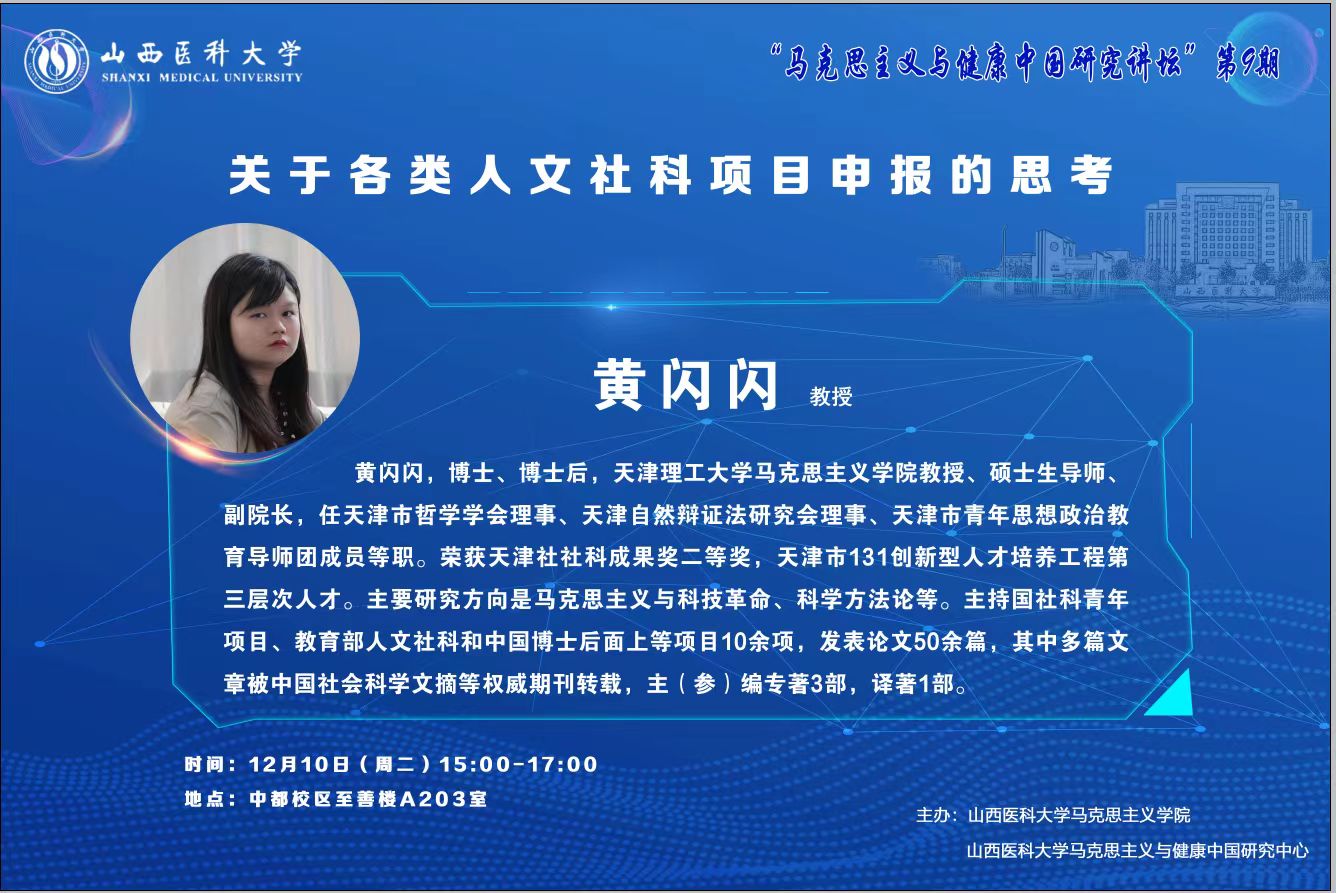 【“马克思主义与健康中国研究讲坛”第9期】黄闪闪 讲“关于各类人文社科项目申报的思考”