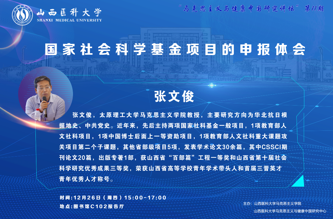 【“马克思主义与健康中国研究讲坛”第11期】张文俊 讲“国家社会科学基金项目的申报体会”