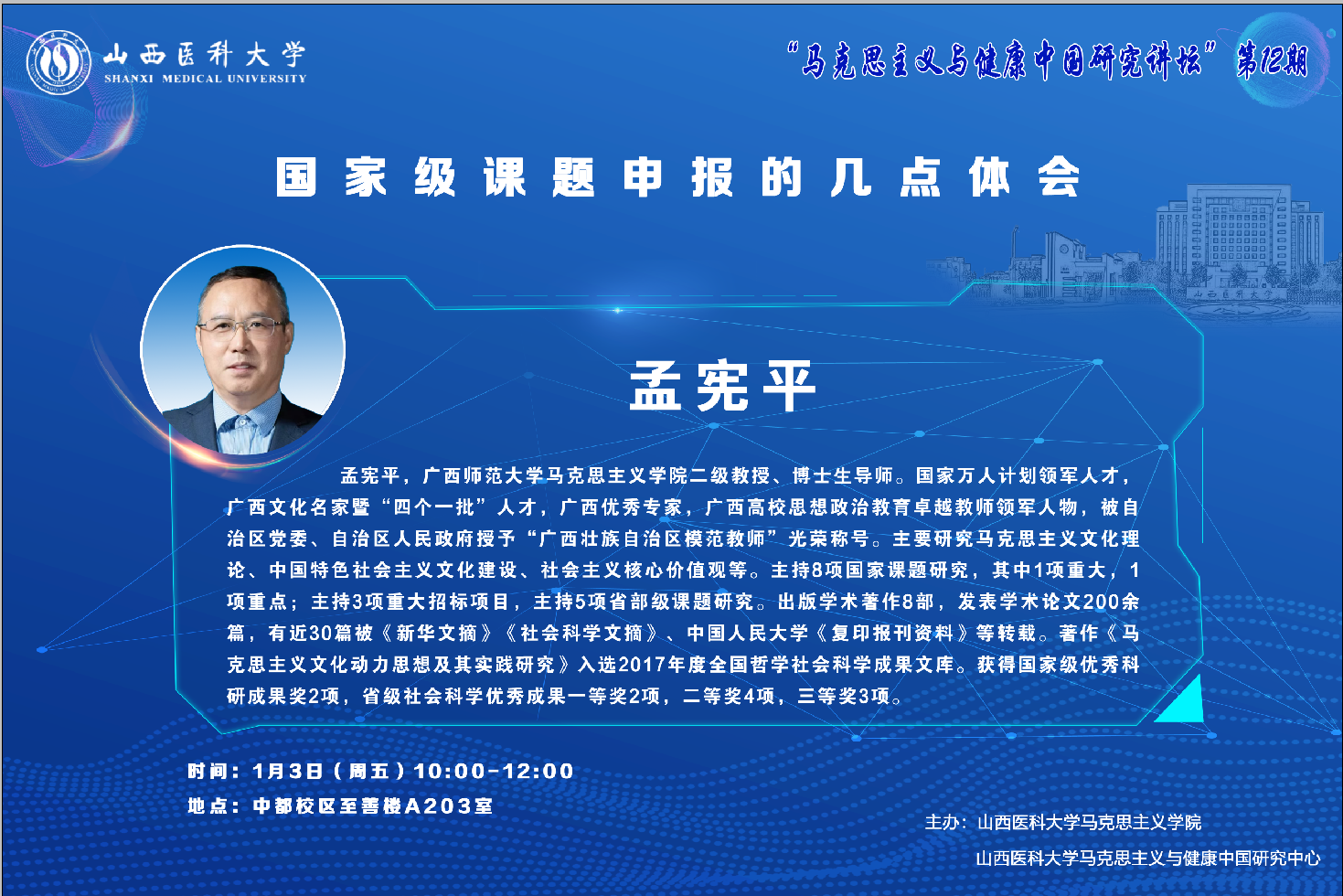 【“马克思主义与健康中国研究讲坛”第12期】孟宪平 讲“国家级课题申报的几点体会”