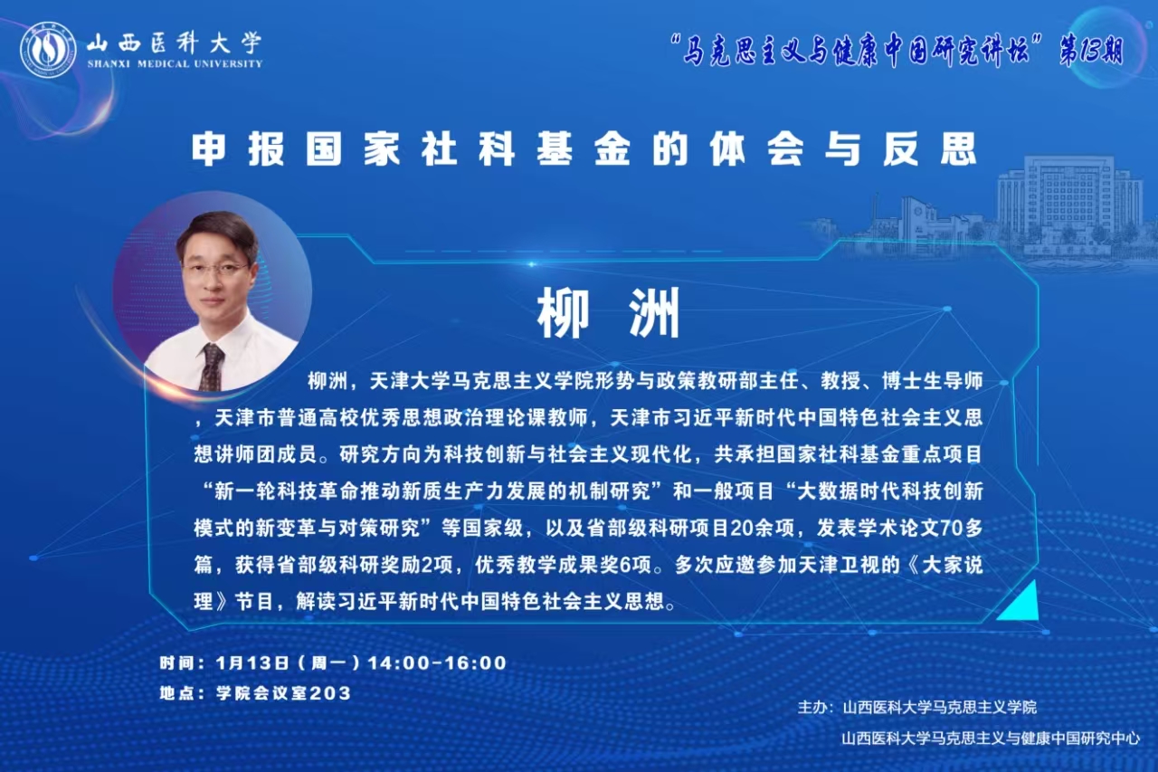 【“马克思主义与健康中国研究讲坛”第13期】柳洲讲“关于申报国家社科基金的体会与反思”
