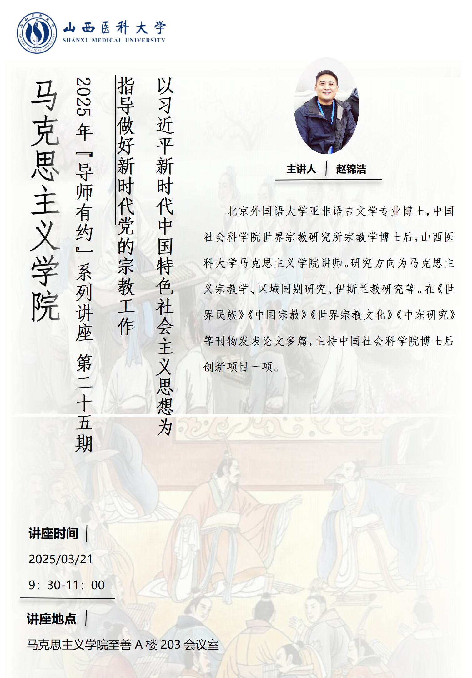 【“导师有约”第二十五期】赵锦浩讲授“以习近平新时代中国特色社会主义思想为指导做好新时代党的宗教工作”