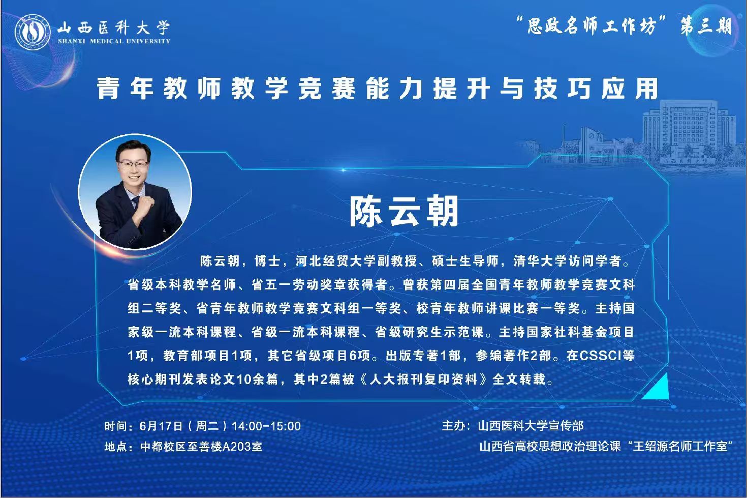 【“思政名师工作坊”第3期】陈云朝讲:青年教师教学竞赛能力提升与技巧应用