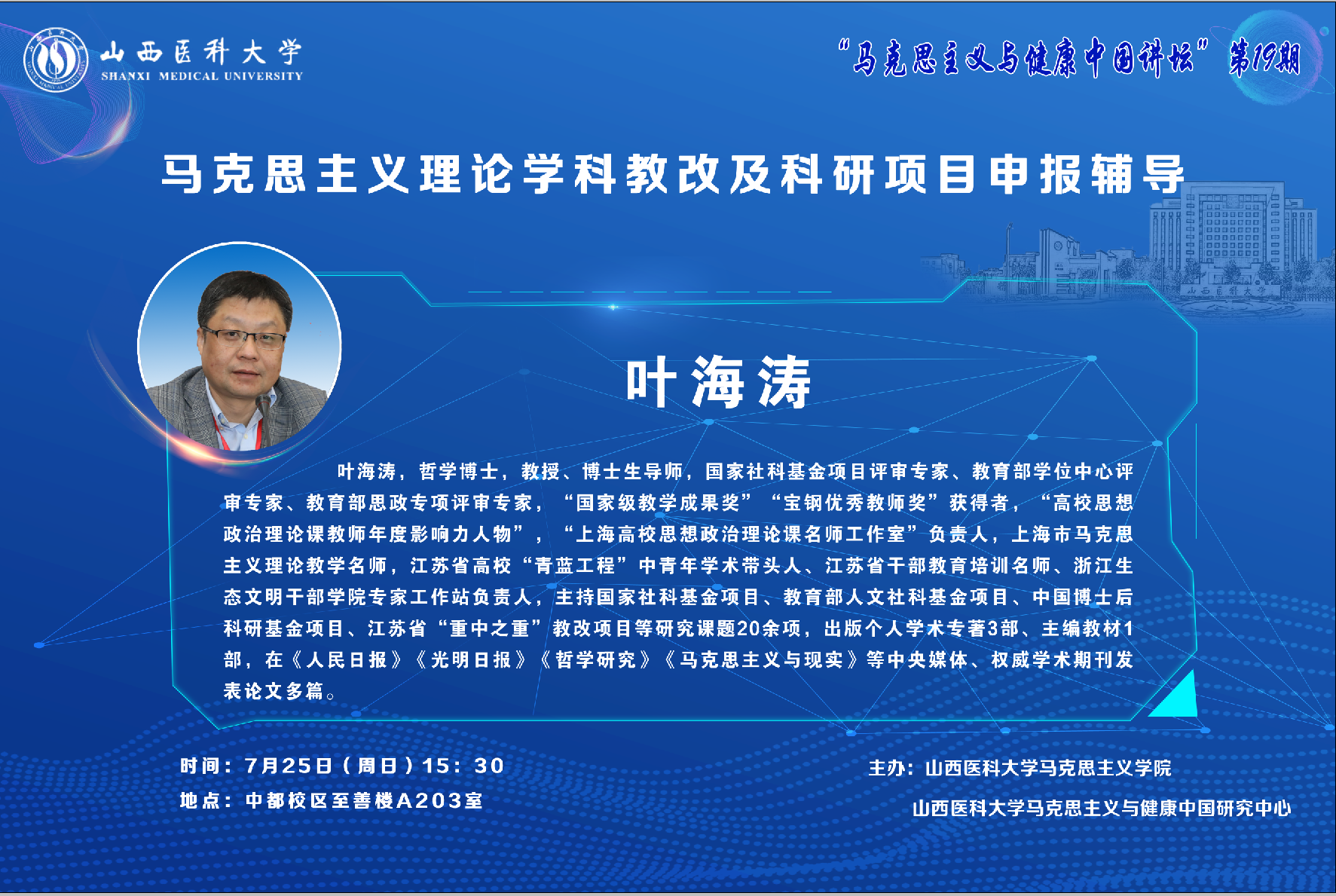 【“马克思主义与健康中国研究讲坛”第19期】叶海涛讲“马克思主义理论学科教改及科研项目申报辅导”