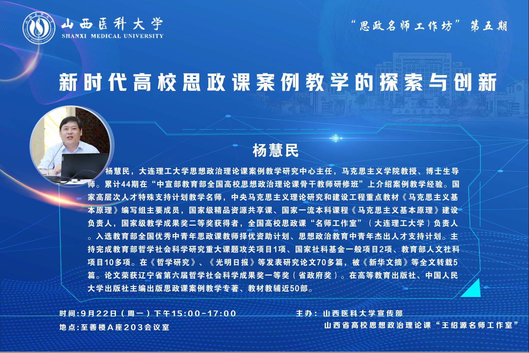 【“思政名师工作坊”第5期】杨慧民讲“新时代高校思政课案例教学的探索与创新”