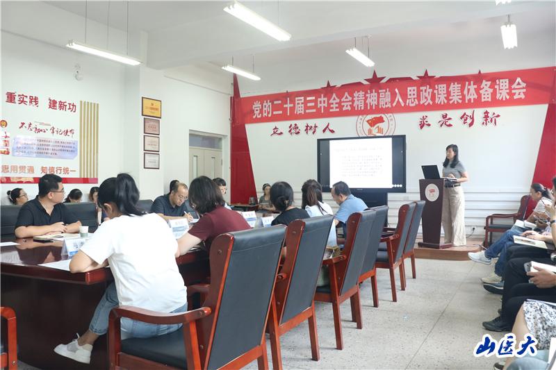 为深入学习贯彻党的二十届三中全会精神,落实好《山西省教育厅关于做好2024-2025学年高校思政课课堂教学提升行动的通知》,使思政课建设与党的创新理论武装同步推进, 8月28日下午,马克思主义学院召开了党的二十届三中全会精神融入思政课集体备课会,校党委副书记彭月兰以教师的身份出席并讲话,院领导和全体教师参加了会议,马克思主义学院党总支书记景建民主持会议,马克思主义学院副院长(主持工作)王绍源就集体备课作点评和工作安排。