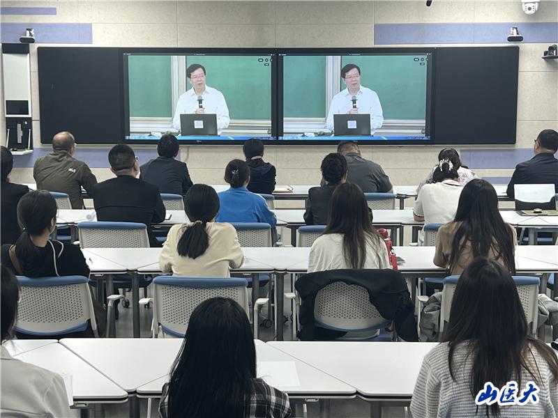 为深入贯彻落实《教育部关于加强新时代高校“形势与政策”课建设的若干意见》,更好地发挥“形势与政策”课程在立德树人方面的重要作用,9月11日晚,依托清华学堂在线雨课堂平台,万象城师生以“同步异校”模式在云端与清华大学师生相聚,共同聆听由清华大学党委书记、中国科学院院士邱勇讲授的新版《形势与政策》第一课。学校领导、党委宣传部、教务部、马克思主义学院“形势与政策”课全体教师与2022级部分专业的学生一同学习观摩。