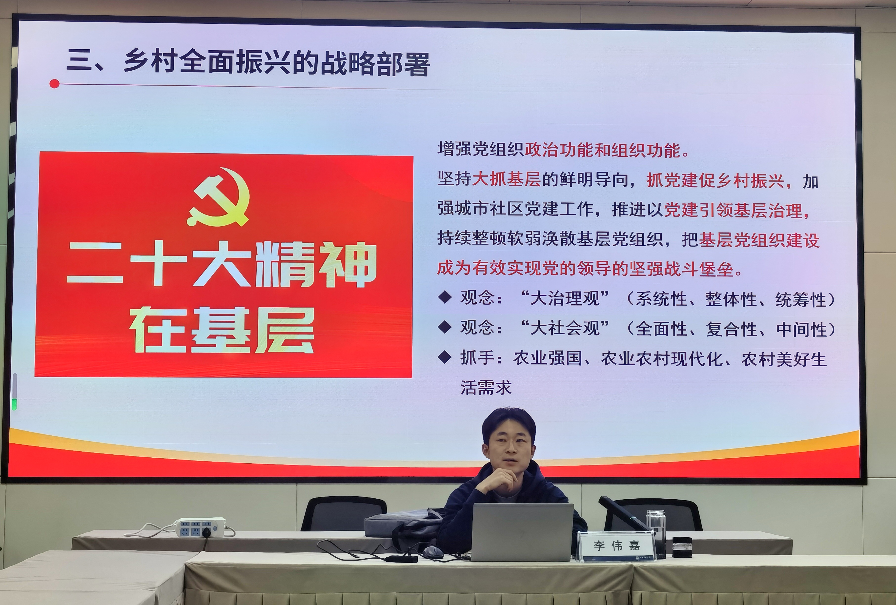 李伟嘉指出,我国作为农业大国,长期以来面临城乡发展不均衡问题,农村在基础设施、公共服务、产业发展等方面存在突出短板。乡村振兴作为中国式现代化的重要组成部分,需紧扣其内涵与特征,推动农业农村高质量发展,实现乡村从传统向现代的全面转型。此外,他还指出,学位论文选题要紧扣国家发展战略,同学们要在农村调查研究中发现真问题。他还针对性地提出了粮食安全与稳产保供、巩固脱贫攻坚成果、农业现代化与科技创新等乡村全面振兴研究的几个前沿问题。
