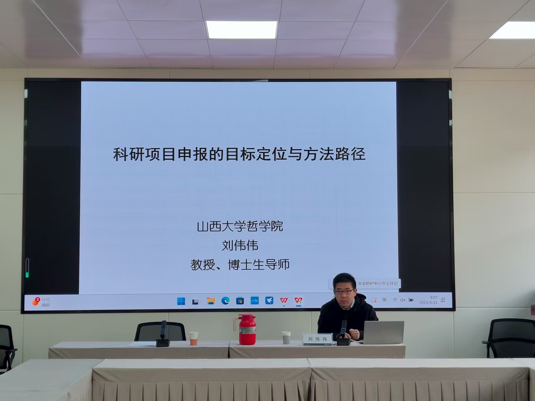 4月11日上午,“马克思主义与健康中国研究讲坛”第17期在至善楼A203室举行。本次讲座特邀山西大学哲学学院刘伟伟教授作了题为“科研项目申报的目标定位与方法路径”的专题报告。本次讲座由杨烨阳副教授主持。