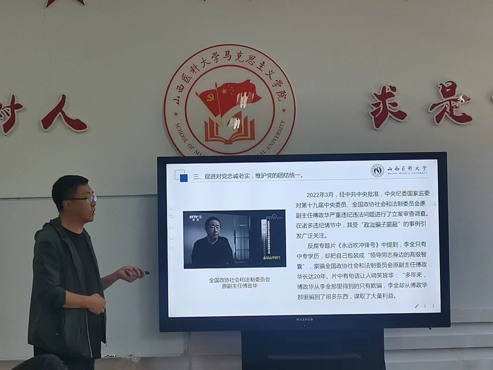 第四党支部书记李超就《中国共产党纪律处分条例》修订的时代背景、总体情况与重要意义进行辅导学习和交流展示;