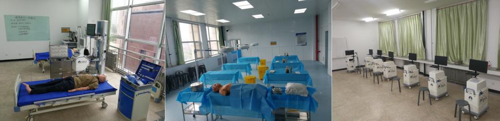 实训中心作为临床模拟教学与临床实践相结合的基地,提供了以模拟临床操作为主要取向的教学环境。利用现代医学模拟教育手段,在原实验室基础上扩建,增设了麻醉、影像、妇儿五官、护理和综合技能等实验教学部分,加强传统与现代的结合,更新实验教学内容:例如将心肺听诊和肝脾触诊都在模拟设备上进行教学,整合呼吸系统、心血管系统和消化系统等内容;利用十余种手术术式,整合麻醉、无菌术、手术和术后检测等学习内容;为加强学生临床综合能力、决策思维以及职业价值和人文素质等方面的培养,利用可模仿百余种病例的“生理驱动”型智能模拟人——HPS,逼真再现各类临床场景,学生以小组完成案例诊治过程,涉及角色分工,团队配合,强化学生临床思维能力和实践技能培养;在传统实验教学和考核手段上,融入了特殊的医学模拟手段——SP,利用更加科学和人性化的教学和考核手段,全面提高医学生的临床诊断能力和各项临床操作能力,培养敏捷、严谨的临床思维,提高学生的临床综合能力,加强中心的教学功能。