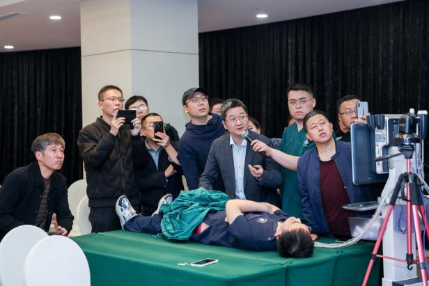 除专题讲座外,梅伟教授还进行了现场演示,展示了超声引导下T12-L1椎旁阻滞、颈深丛及前路坐骨神经的阻滞。在演示过程中,他详细讲解了每一步的操作要点和注意事项,并强调了超声技术在神经阻滞中的重要作用,为今后的临床实践提供了有力的支持。