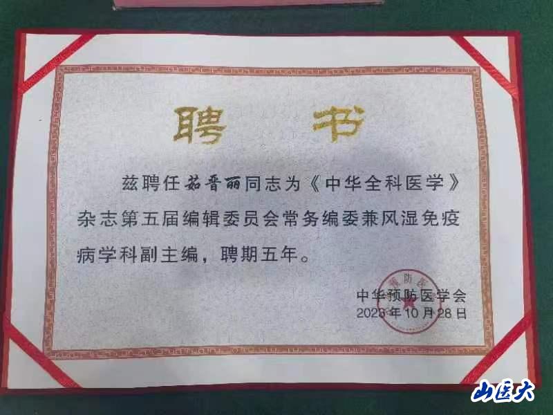 《中华全科医学》创刊于2003年,是由国家卫生健康委员会主管、中华预防医学会与安徽省全科医学会主办的国家级全科医学领域科技学术期刊。茹晋丽主任此次入选新一届编委,彰显了万象城第二医院全科医学科在发展过程中日益提升的学科影响力。