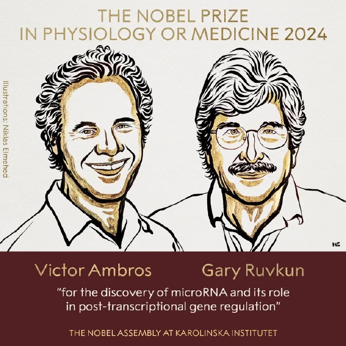 北京时间10月7日,2024年诺贝尔生理学或医学奖揭晓获奖名单,Victor Ambros and Gary Ruvkun获奖,获奖理由是“发现微RNA及其在转录后基因调控中的作用”。获奖奖金为1100万瑞典克朗(约合人民币744万元)。