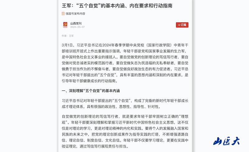 3月1日,习近平总书记在2024年春季学期中央党校(国家行政学院)中青年干部培训班开班式上作出重要指示强调,年轻干部是党和国家事业发展的生力军,是中国特色社会主义事业的接班人。要自觉做党的创新理论的笃信笃行者,要自觉做对党忠诚老实的模范践行者,要自觉做矢志为民造福的无私奉献者,要自觉做勇于担当作为的不懈奋斗者,要自觉做良好政治生态的有力促进者。习近平总书记对年轻干部提出的“五个自觉”,具有丰富的思想内涵和深刻的内在要求,是引导年轻干部健康成长的行动指南。