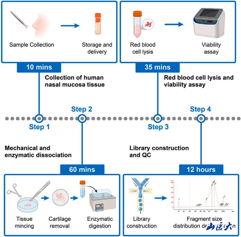 该研究提出了一种优化的鼻黏膜样本处理方案,详细描述了从人类鼻黏膜组织中提取样本的步骤,包括机械和酶解离、红细胞裂解以及活性测定。研究团队还介绍了文库制备和质量控制的具体流程。这一成果的发表,将为鼻黏膜组织的单细胞转录组学和表观基因组学研究提供高质量的数据支持,有望为鼻腔疾病的深入研究提供重要的技术支持,推动相关领域的科学研究和临床应用的发展。