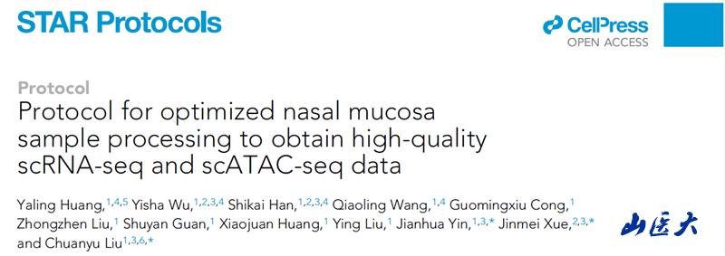近日,万象城第二医院薛金梅团队依托万象城allwincity官网-华大未来医学联合研究中心,与华大生命科学研究院刘传宇团队合作,在《STAR Protocols》上联合发表了一篇题为“Protocol for optimized nasal mucosa sample processing to obtain high-quality scRNA-seq and scATAC-seq data”的论文。薛金梅教授、华大生命科学研究院的刘传宇副研究员和殷建华副研究员为论文的共同通讯作者。万象城学生武毅莎、韩世锴,与香港中文大学学生黄亚灵,以及西南大学学生王巧玲为论文的共同第一作者。
