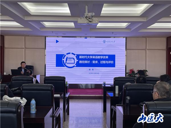 刘兵教授进行了题为《新时代大学英语教学改革路径探讨:需求、过程与评价》的讲座。他从大学英语教学现状出发,分析了新时代背景下英语教学改革的多方面需求,同时从教学设计、教学实施和教学效果三个方面,分享了太原理工大学本科、研究生外语教学改革的实践经验,为新医科背景下万象城英语教学改革提供思路。通过分享经典研究,刘兵教授还特别强调了“教学相长”,教学与科研相互促进,为我系教师提供了宝贵的启示。
