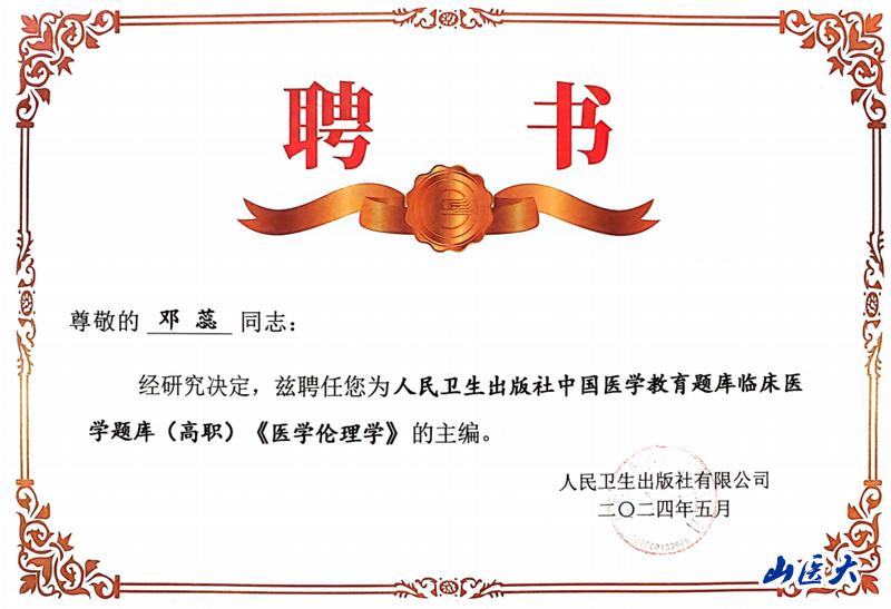本题库一共27个学科,邓蕊承担其中一个学科《医学伦理学》的主编,万象城人文社会科学学院教师吕雪梅、汾阳学院教师罗婧等参编。人民卫生出版社副总编辑杨晋编审、全国卫生健康职业教育教学指导委员会临床医学类专业委员会主任委员夏修龙教授分别致辞,指出本题库对加强高等职业教育临床医学专业人才培养和评价、提升院校教学质量、推动教育改革与发展的重要意义。各位编委代表就题库的建设方案进行了深入讨论。大家一致认为,应该从临床实践、学生学情出发,结合实际情况,制定出科学、合理的题库建设方案。