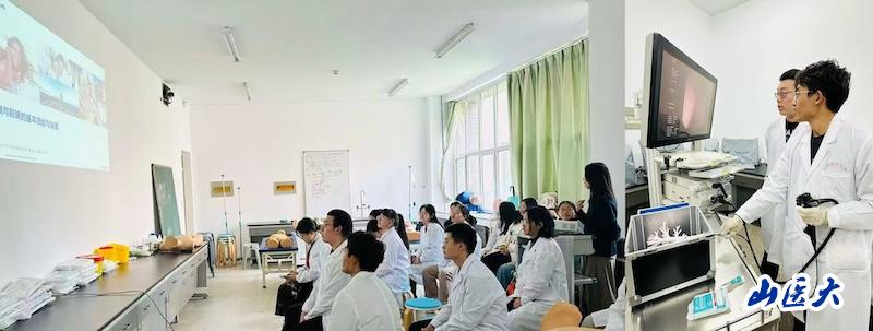 实验室开放期间,授课教师团队结合临床实际需求,采用“理论讲解+实操演练”的双轨模式。理论课堂上,讲师们系统梳理了医学内镜的发展历程、核心构造、工作原理及临床应用规范,深入解析了内镜检查中的安全要点与常见问题处理方案;实操环节中,奥林巴斯提供了真实的内镜设备,学生们分组上手操作,从内镜的正确握持、镜头操控,到图像采集等关键技能进行反复练习,老师们全程巡回指导,针对操作中的细节问题逐一纠正,确保每位学生都能熟练掌握核心操作流程。