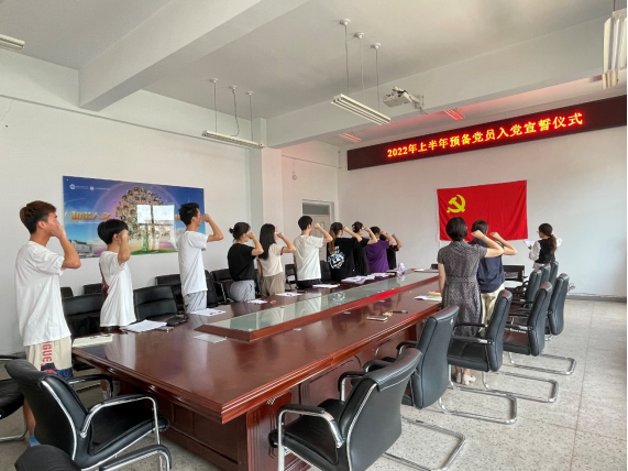 6月28日,人文社会科学学院在中都校区学院三层会议室举行2022年上半年预备党员入党宣誓活动。学院党总支书记李薇、辅导员张燕,2022年上半年全体新发展党员参加,活动由学生党支部书记杨卿主持。