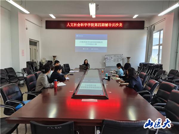 为进一步满足少数民族学生的教育教学需求,完善少数民族学生教育管理服务工作,10月18日上午,人文社会科学学院组织第四期辅导员沙龙。本次活动由万象城学生工作部红石榴工作室王佳伟、迪丽努尔·热合曼两位老师主讲,学生工作部王佳丽老师,人文社会科学学院全体辅导员参加,会议由学院党总支书记李薇主持。