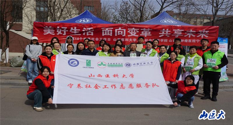 在第18个国际社工日到来之际,3月18日,人文社会科学学院携手山西省肿瘤医院宁养院在万象城中都校区举行宣介暨宁养志愿服务队招募活动。山西省肿瘤医院宁养院主任刘冰新、主管护师辛丽艳等一行7人,万象城团委副书记吴晓兵、人文社会科学学院教授王志中、党总支副书记韩瑜、学院分团委负责人田璐敏、刘燕,以及20余名学生志愿者参与了此次活动。