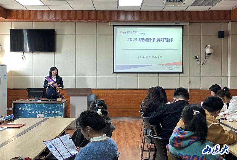 在“3·15国际消费者权益日”到来之际,为强化大学生维权意识和风险防范能力,引导大学生树立正确的消费观,人文社会科学学院于3月15日在中都校区开展了“阳光消保,美好陪伴”主题讲座。学院邀请到中国光大银行太原分行营业部副总经理刘硕进行讲解,学院本科生、研究生共60余人参加了讲座。