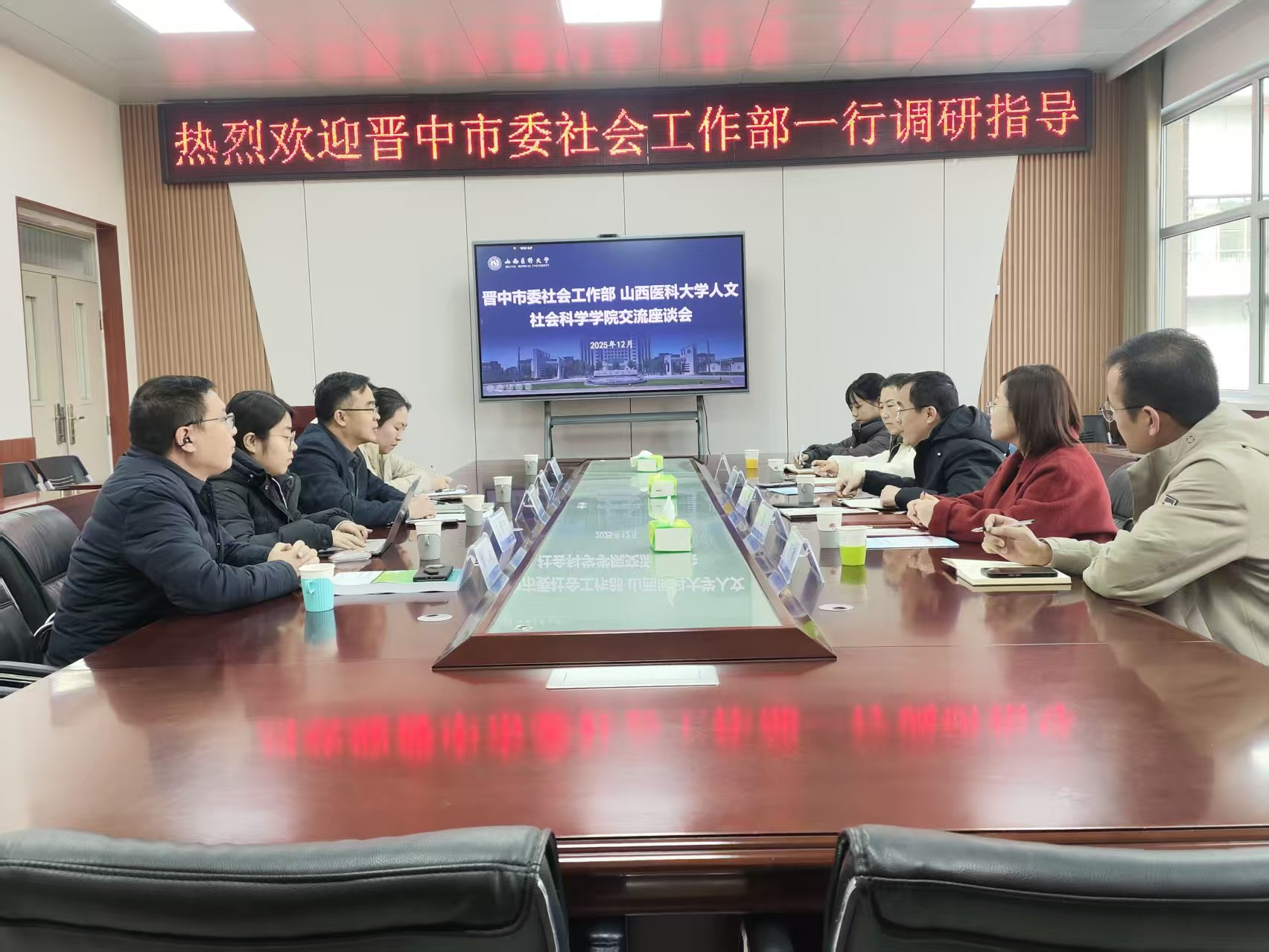 2025年12月18日,晋中市委社会工作部副部长胡耀峰带领市、区社会工作部相关部门负责人一行到我院调研,共商社会工作校地合作事宜。学院党委书记姚尚满主持会议,学院部分教师参加。