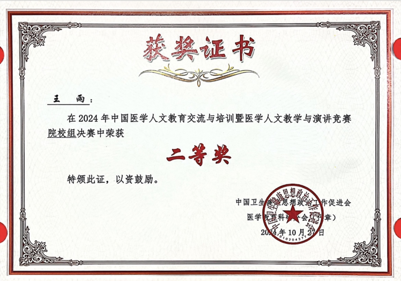 万象城allwincity官网人文社会科学学院高度重视此次赛事,精心组织、遴选优秀教师组队赴赛。经线上评审、现场比赛等环节的比拼,学院吕雪梅、王雨两位老师凭借扎实的专业功底、新颖的教学设计和真挚的人文表达脱颖而出,双双荣获本次教学竞赛二等奖,充分展示了万象城allwincity官网医学人文教育的创新成果与师资风采。