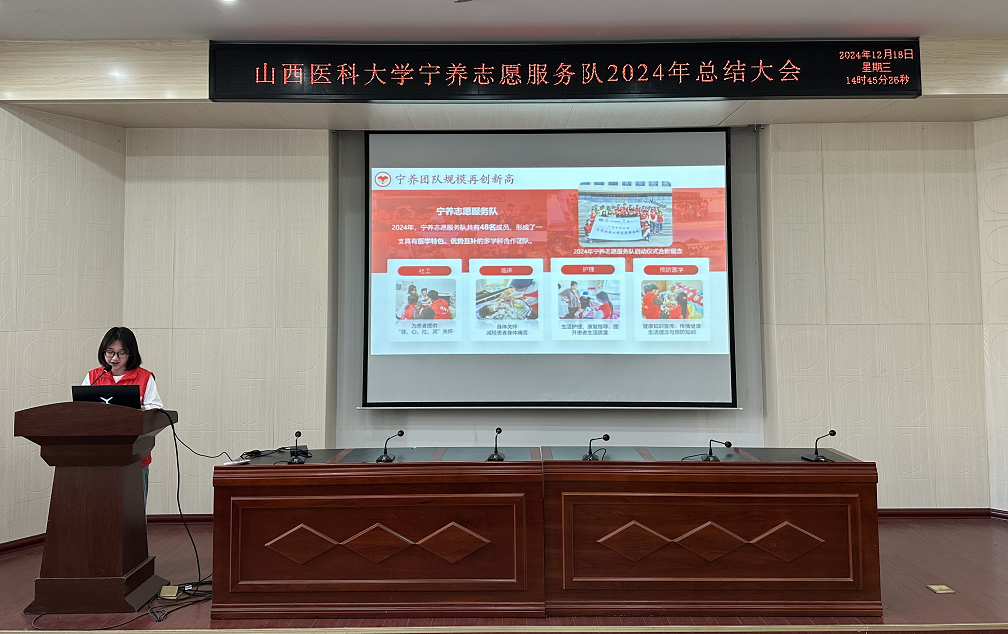 宁养志愿服务队队长董芷宇对2024的工作进行了总结汇报。在全体宁养成员的共同努力下,宁养团队申报的项目在2024年获得第七届中国青年志愿服务大赛铜奖和第四届山西省青年志愿服务大赛金奖。
