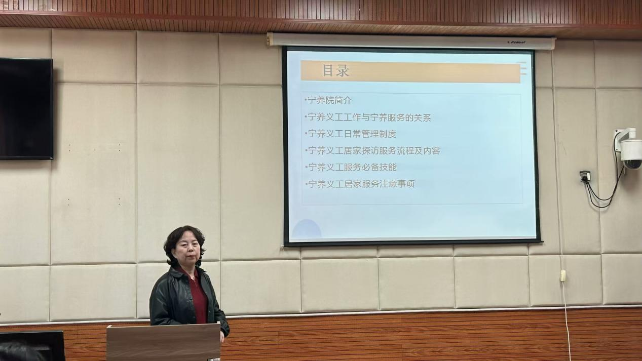 刘冰新介绍了宁养院的服务理念和工作内容,强调宁养义工是病人的倾听者、陪伴者,是患者家庭与医院之间沟通的桥梁,她对新一届宁养志愿服务队表达了殷切期望。