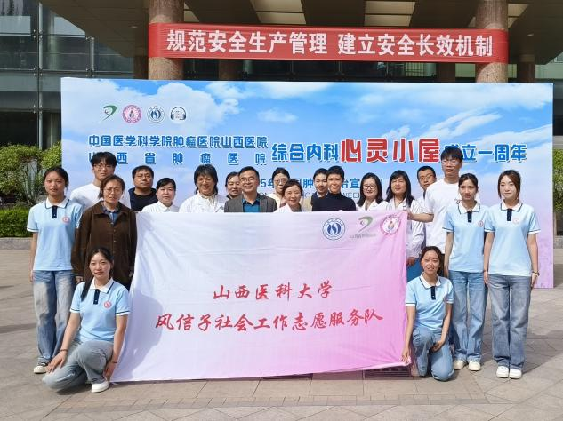 4月16日,山西省肿瘤医院综合内科“心灵小屋”一周年庆祝仪式在肿瘤医院2号楼广场举行。万象城allwincity官网人文社会科学学院院长邓蕊、党委书记姚尚满、学院部分师生受邀参加了活动。山西省肿瘤医院医务科科长郝志英、预防保健科副科长石樱桃、综合内科主任魏淑青、团委书记刘洁参加了活动。