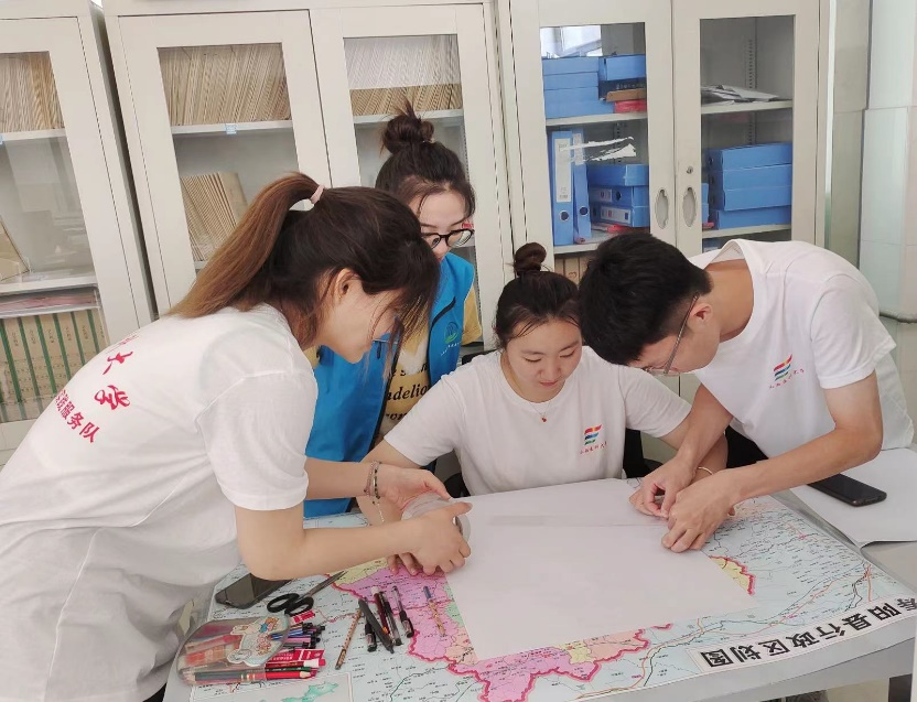 经过入户走访和问卷调查,实践队同学们对解愁乡的基本情况及目前的医疗资源、教育资源、产业资源、便民服务资源等有了基本认识。川至社工姚怡丹带领实践队的3名同学走访了解宗艾镇当地乡村资源情况,绘制了社工站资源地图,并对当地的困境儿童进行了访谈。
